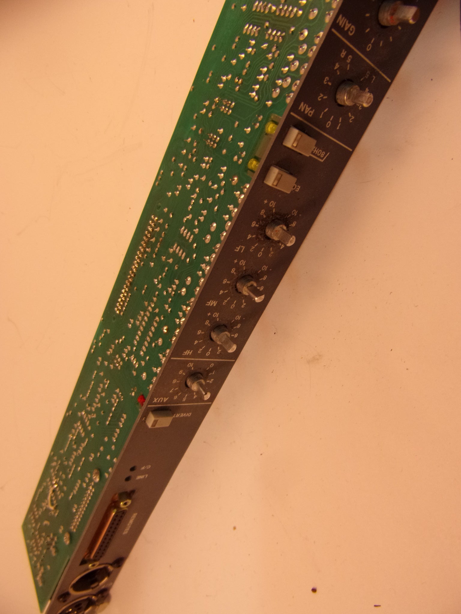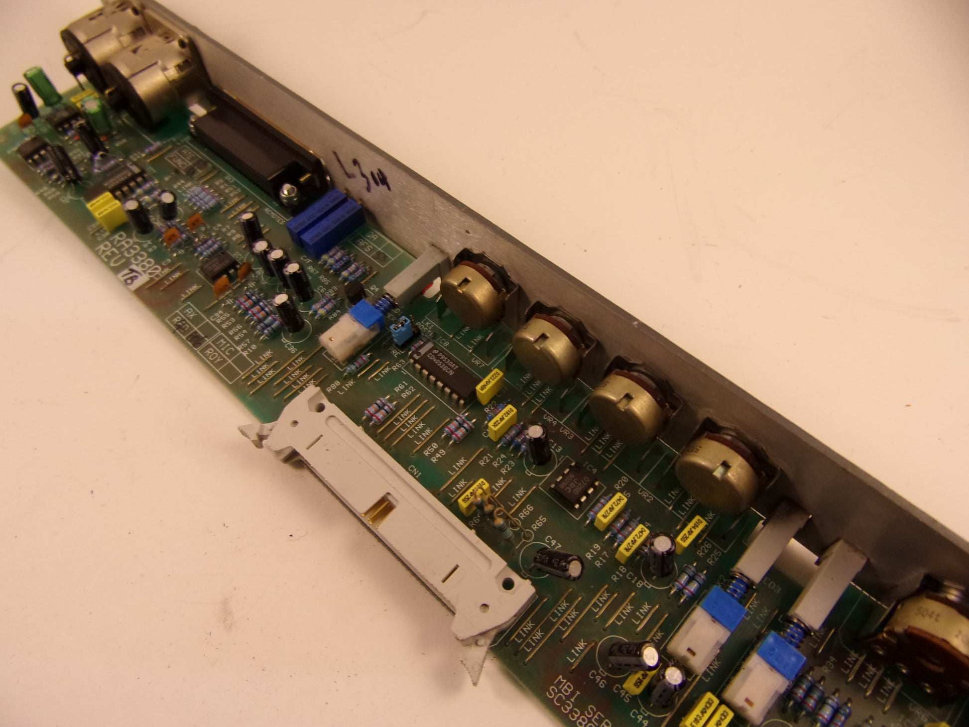 Removed from a working radio station complete pcb with Stereo alps K fader and the front panel metal work only.